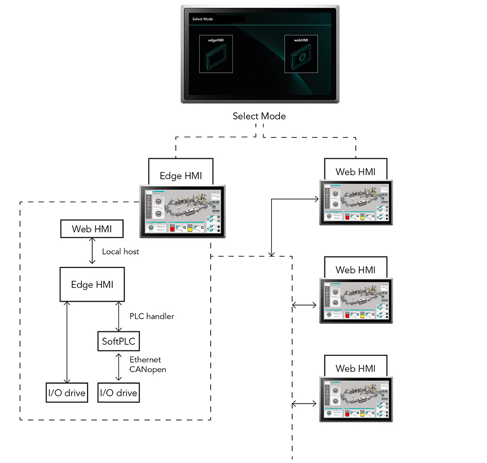 工业设备中混合架构的日益普及,使得拥有能够适应不同场景的HMI界面变得越来越重要,同时不会增加设备管理的复杂性。为了满足这一需求,我们开发了Lumia HMI,这是一种解决方案,允许通过单一控制面板自由选择Edge HMI和Web HMI模式。